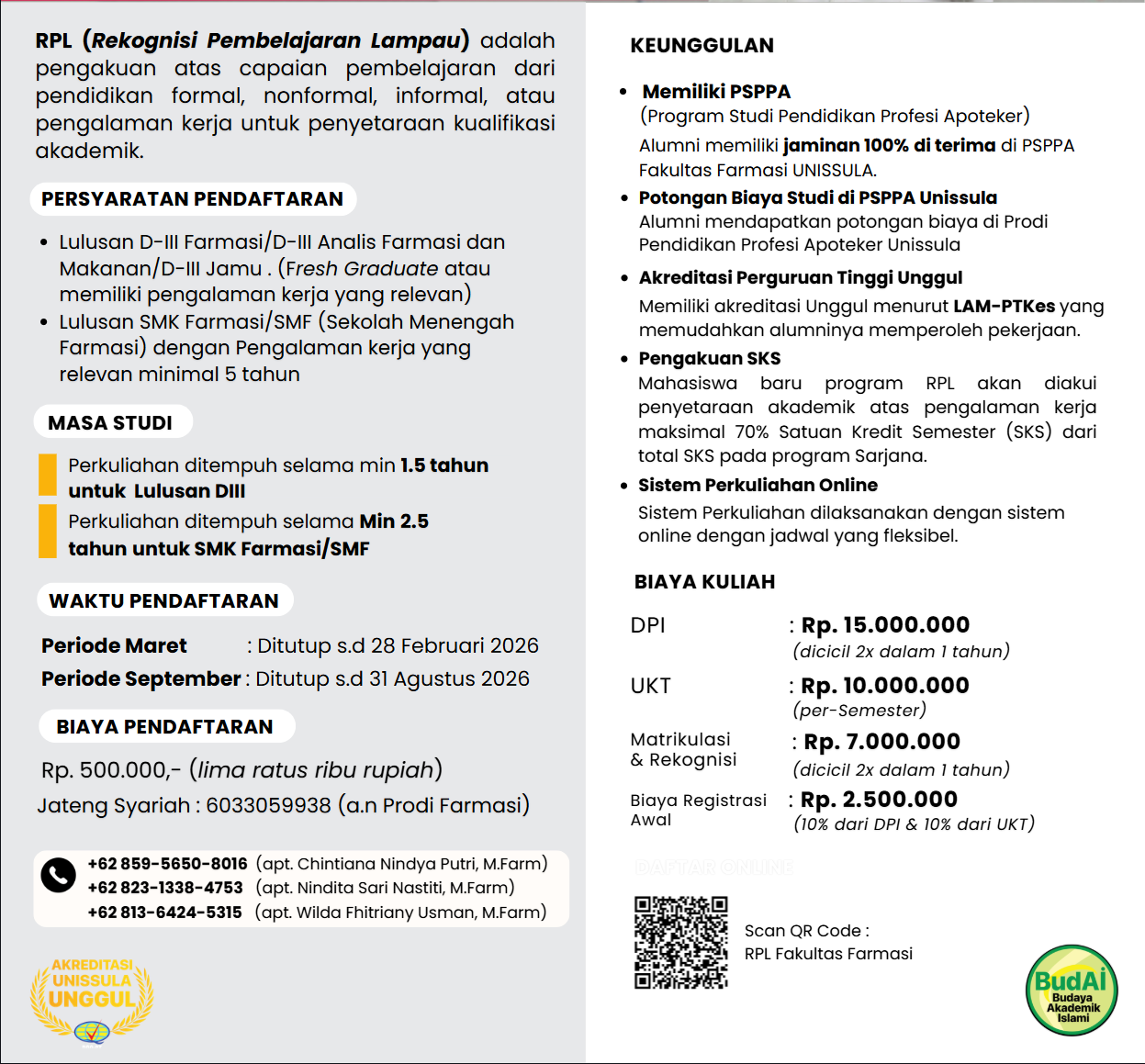 - Perkuliahan ditempuh selama Min 2.5 tahun untuk SMK Farmasi/SMF